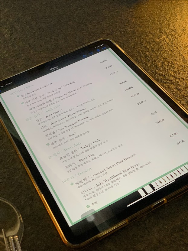 넘은 봄의 메뉴는 이렇게 태블릿으로 깔끔하게 되어있어요.