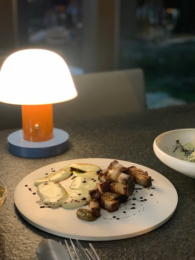 작은 접시로는 감태면과 큰 접시로는 흑돼지 그리고 마무리로 제철 배를 먹었습니다.