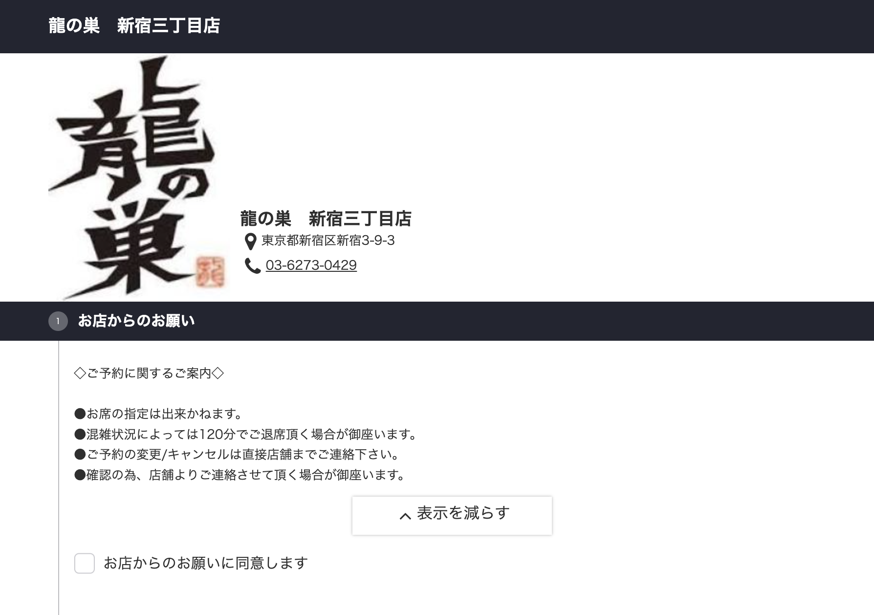 류노스 신주쿠 3초메점 예약 방법