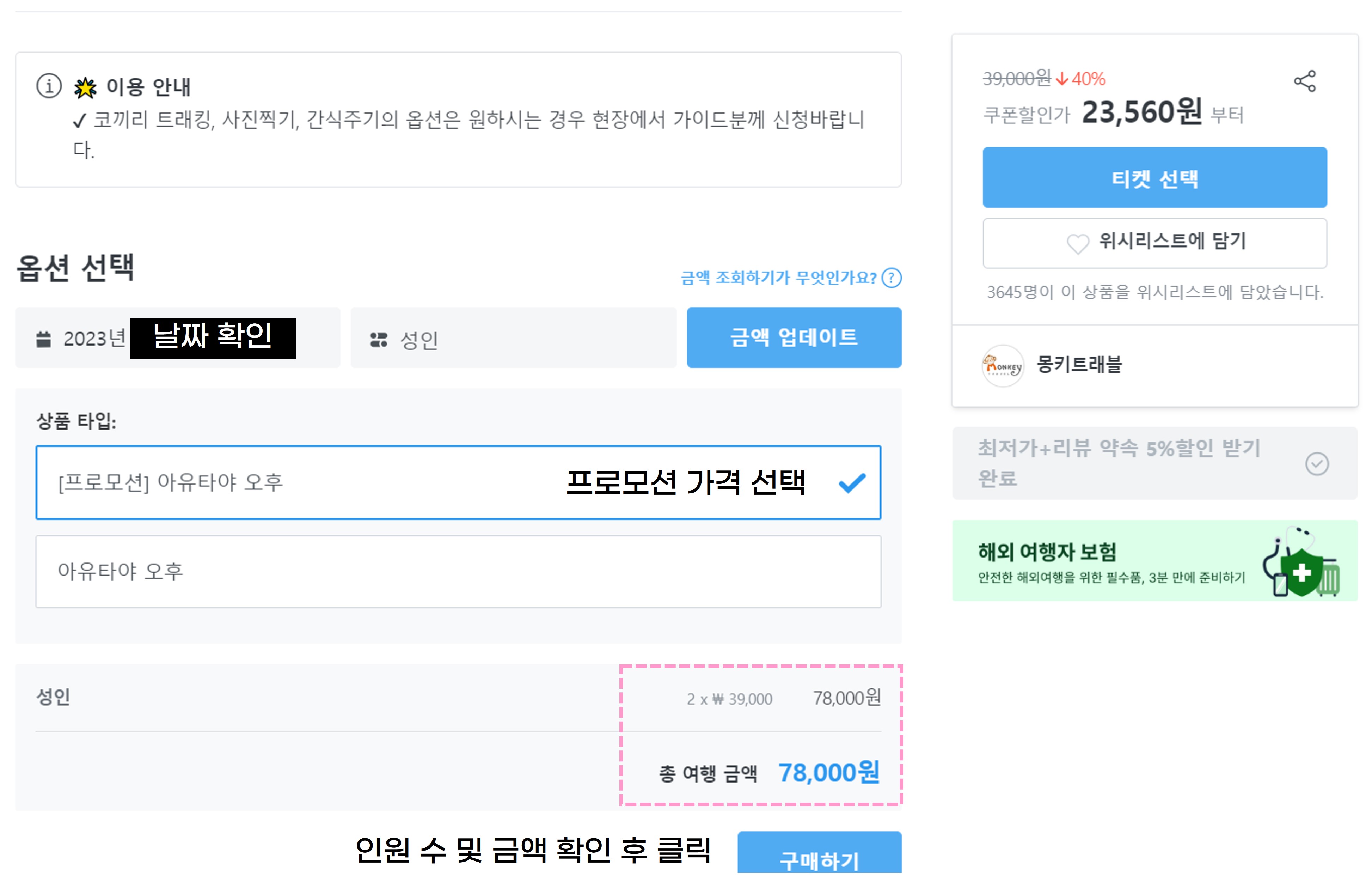 이렇게 2인 총 74,100원에 결제도 끝!
