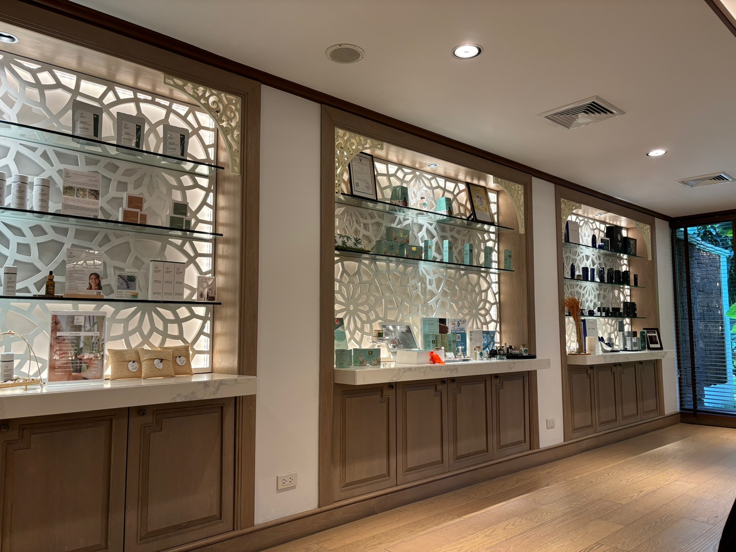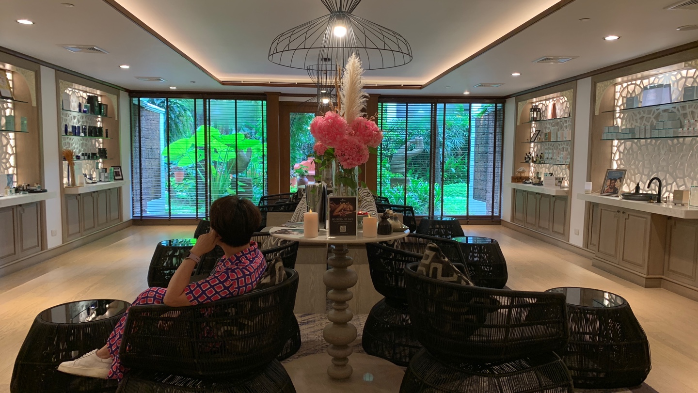 마사지 샵 로비 공간에서