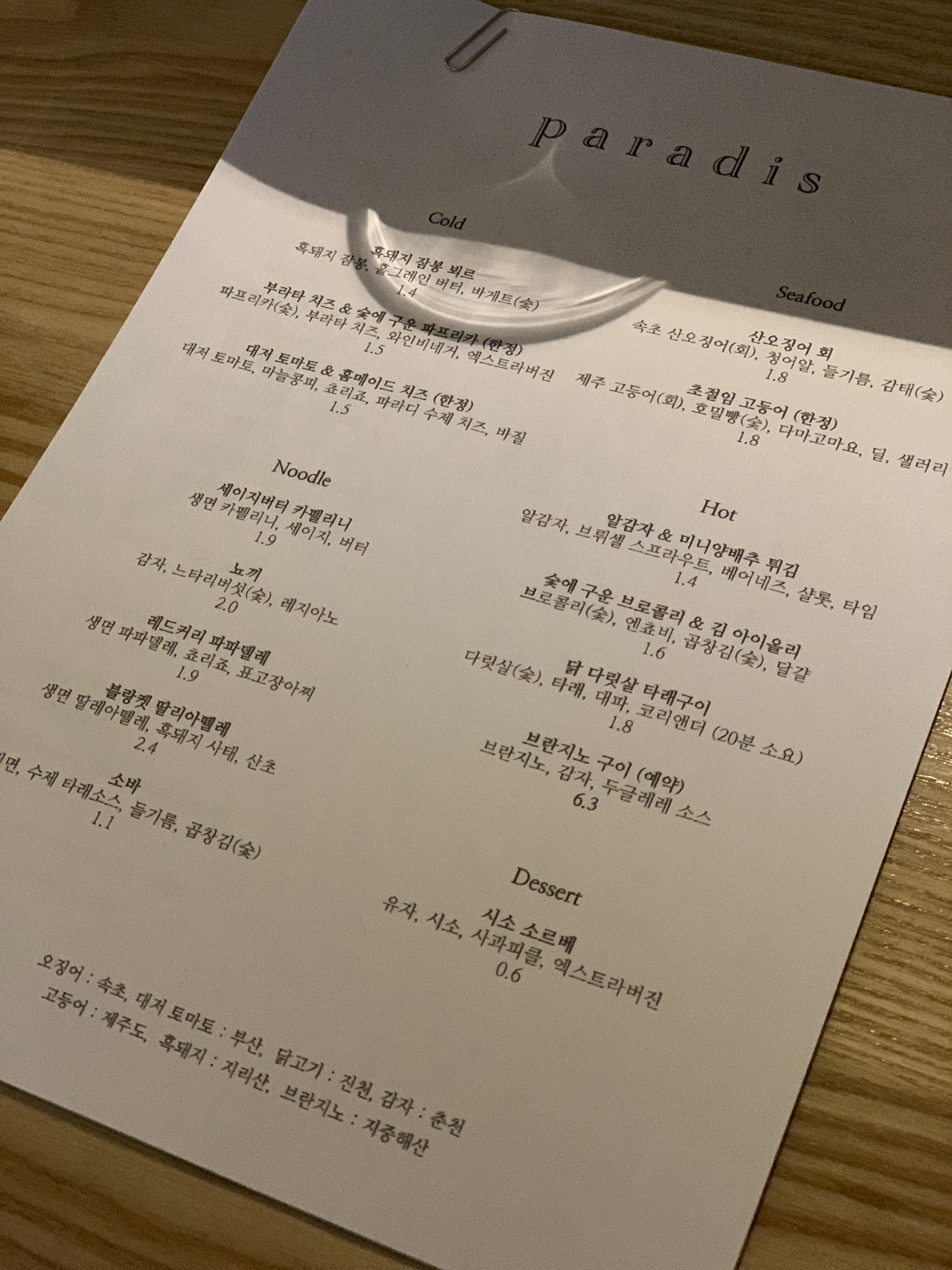 파라디 메뉴