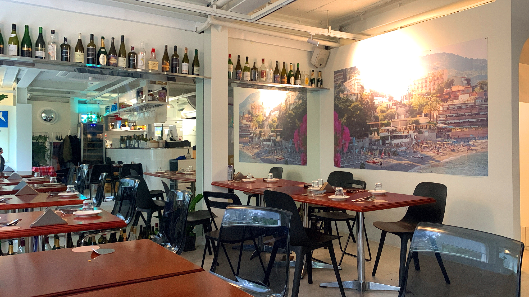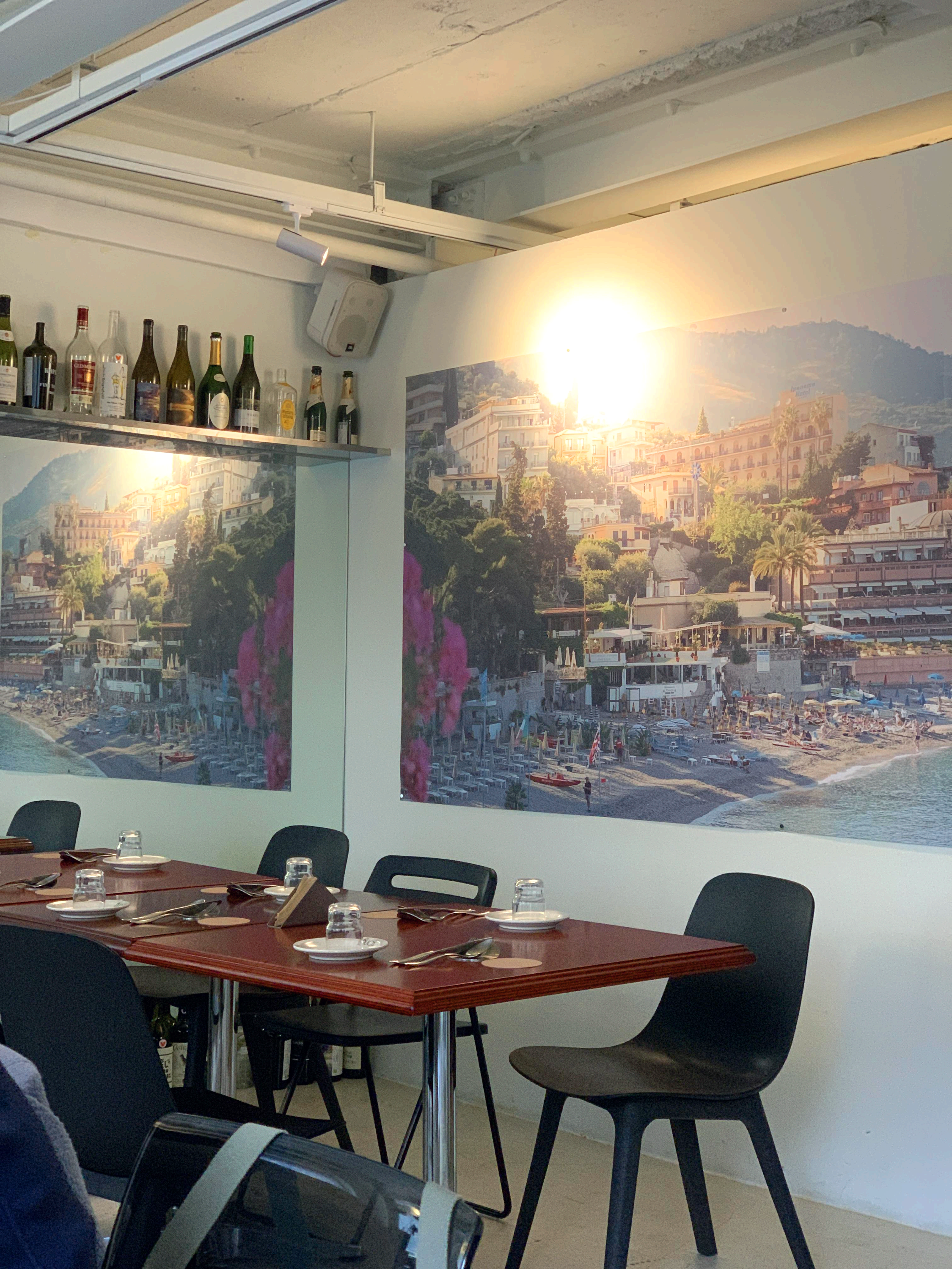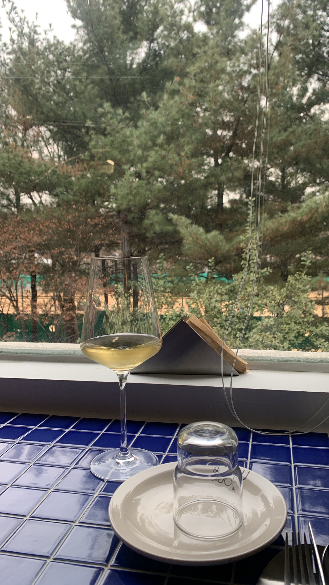 한여름에 해 쨍쨍할때 창가 자리에서 칠링된 와인이랑 음식 먹기에