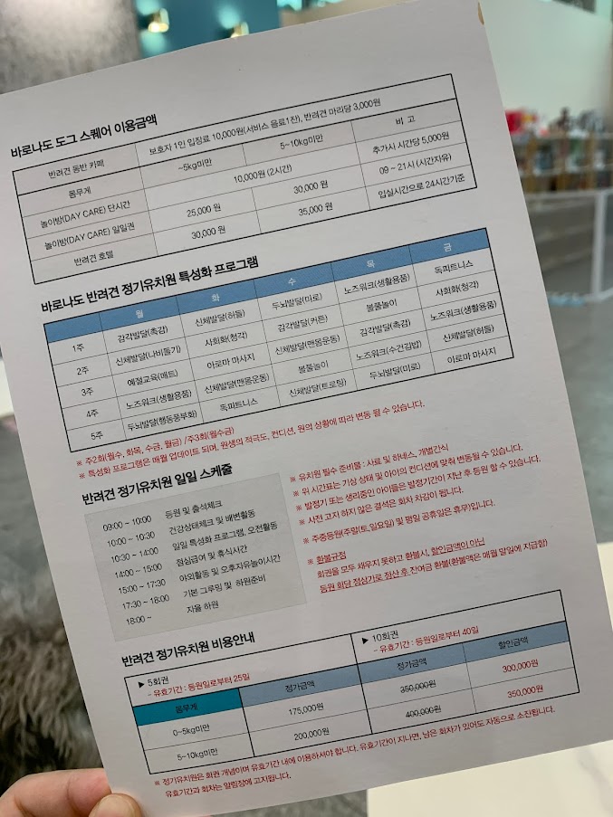 4. 가격 : 보호자 10,000원(음료 포함) + 강아지 1마리(3,000원) + 매너 벨트 1,000원(필요할 경우)