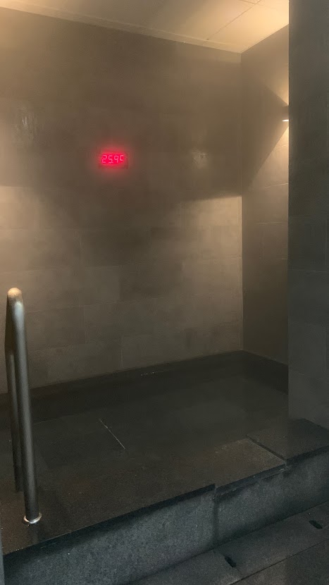 샤워할 수 있는 공간과 냉탕, 온탕 그리고 밖으로 나가면 노천탕 느낌의 탕이 하나 더 있어요.