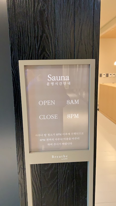 사우나는 2층에 있고, 오전 8시부터 오후 8시까지 운영합니다.