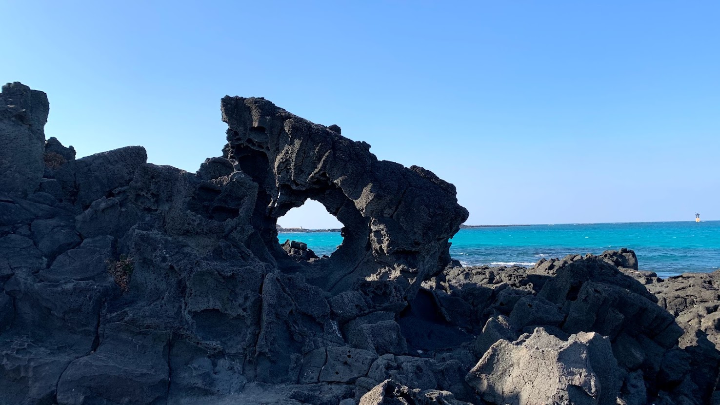 '창꼼바위'라고 네비게이션에 검색하면 조천읍 북촌리에 있는 해안가 쪽으로 안내합니다.