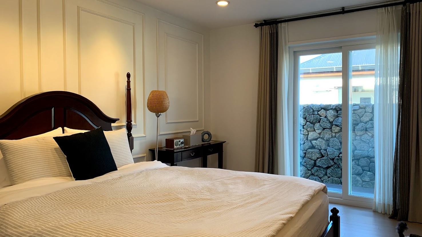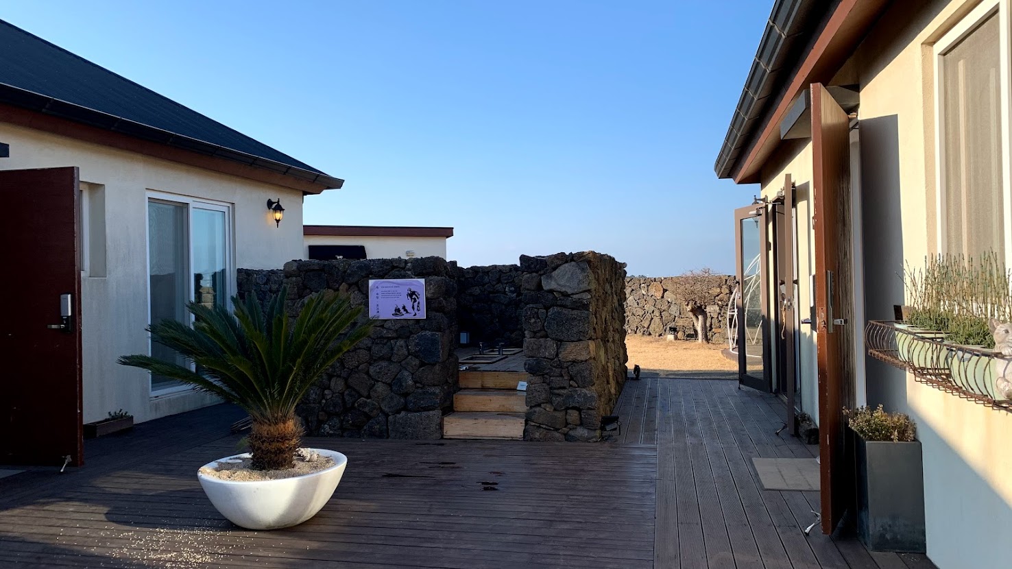 집은 깔끔한 느낌인데 현무암으로 만들어진 돌담으로 둘러싸여 있어서 제주 분위기를 느끼기 좋습니다.