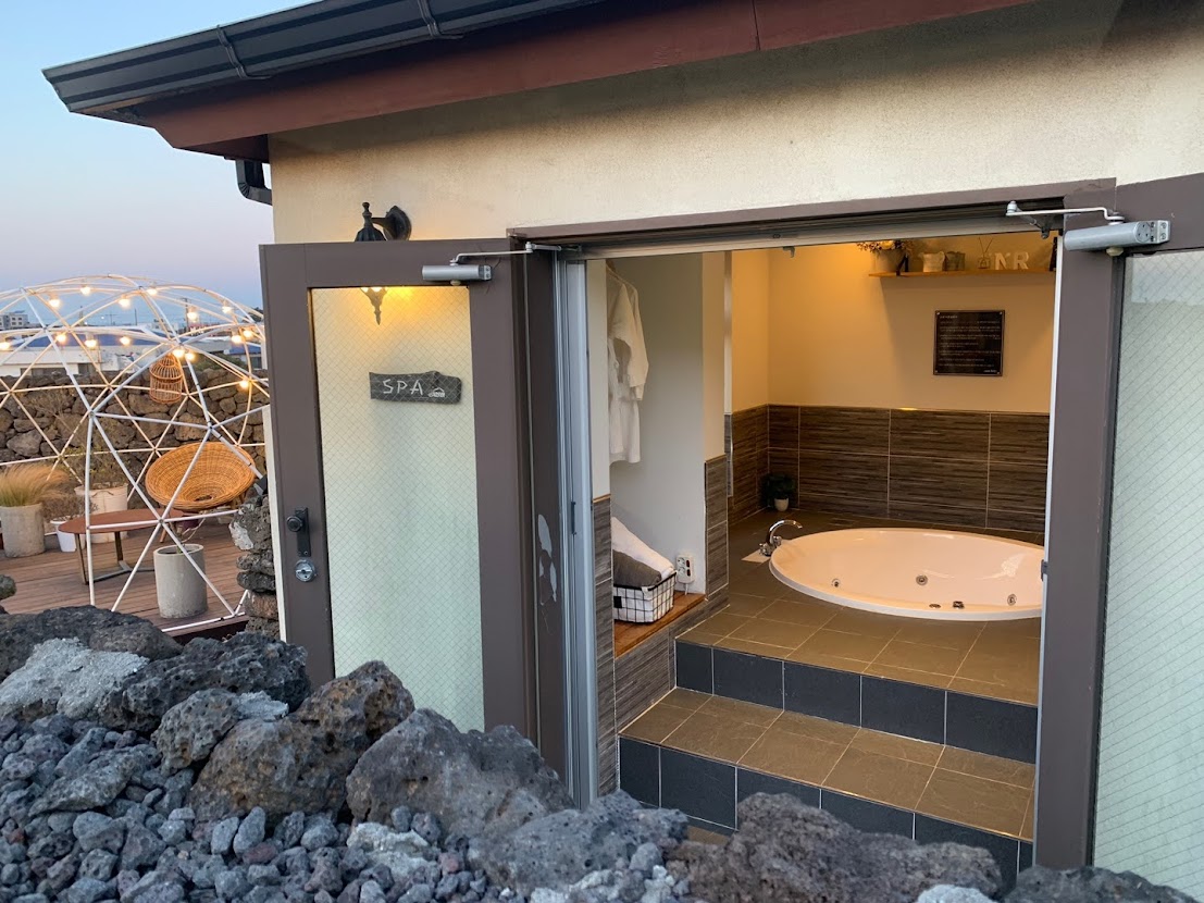 대신 자쿠지에 뜨거운 물을 가득 담아서 이용했습니다.