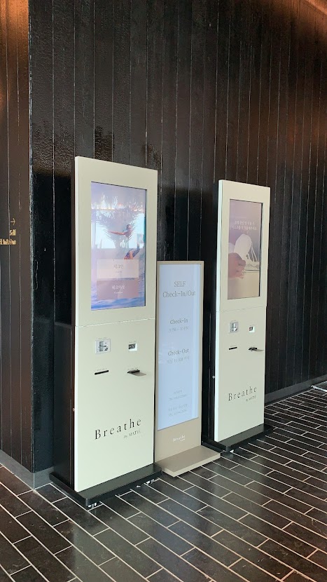 체크인은 이 기계를 이용해서 3시 정각에 진행됩니다.