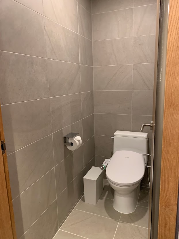 라이즈업 방의 화장실은 신발 벗자마자 바로 오른쪽에 있습니다.