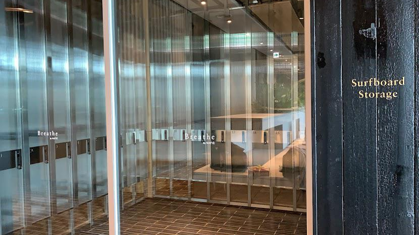 지하에 주차하고 엘리베이터를 타려고 보니 서프보드가 있었고, 1층에는 서프보드 스토리지도 마련되어 있습니다.