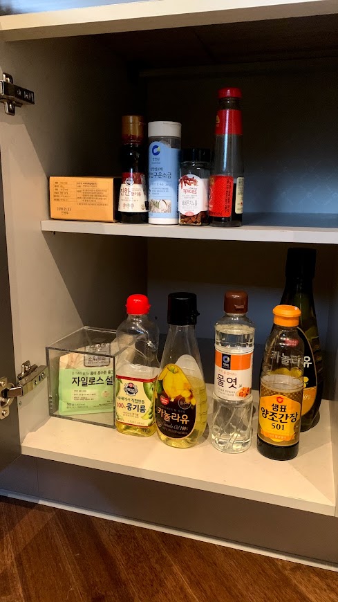 잔, 양념장, 정수기가 잘 갖춰져 있었습니다.