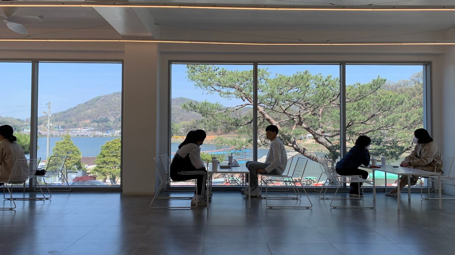2층의 전면부는 저수지를 볼 수 있는데 소나무가 살짝 걸쳐있는 게 풍경이 좋았고,