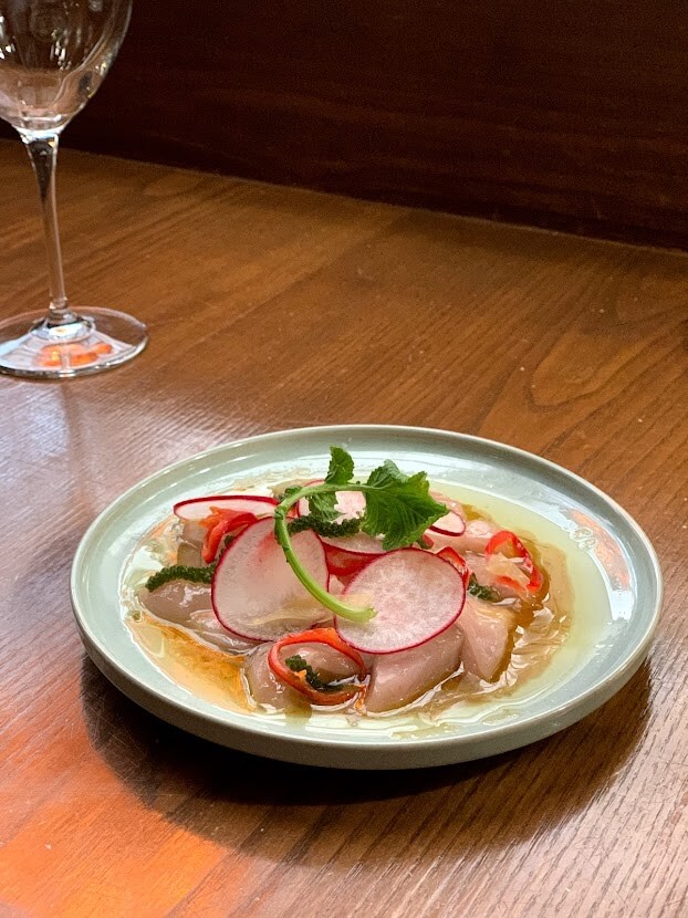 꾸리살 가르파치오와 성게알 냉카펠리니를 먹었습니다.