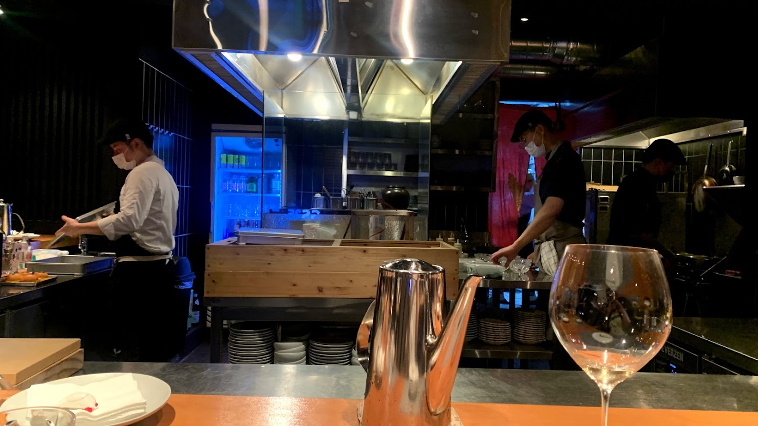 정면으로 요리하시는 분들 모두를 볼 수 있는 자리에 앉고 저녁이 시작됩니다.