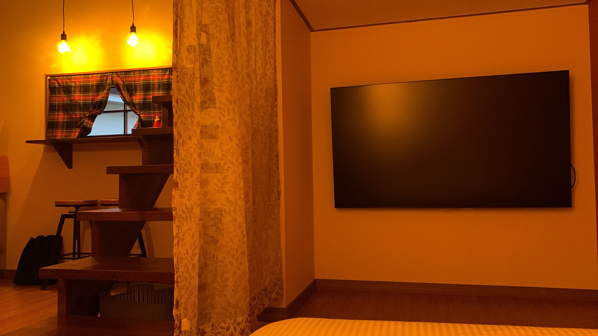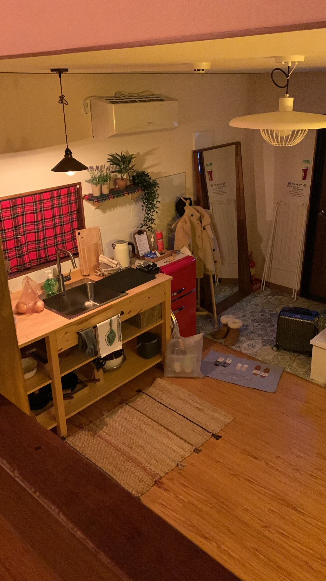 부엌 그리고 복층 공간은 1층 침대(TV 있는 공간), 2층 빔프로젝터