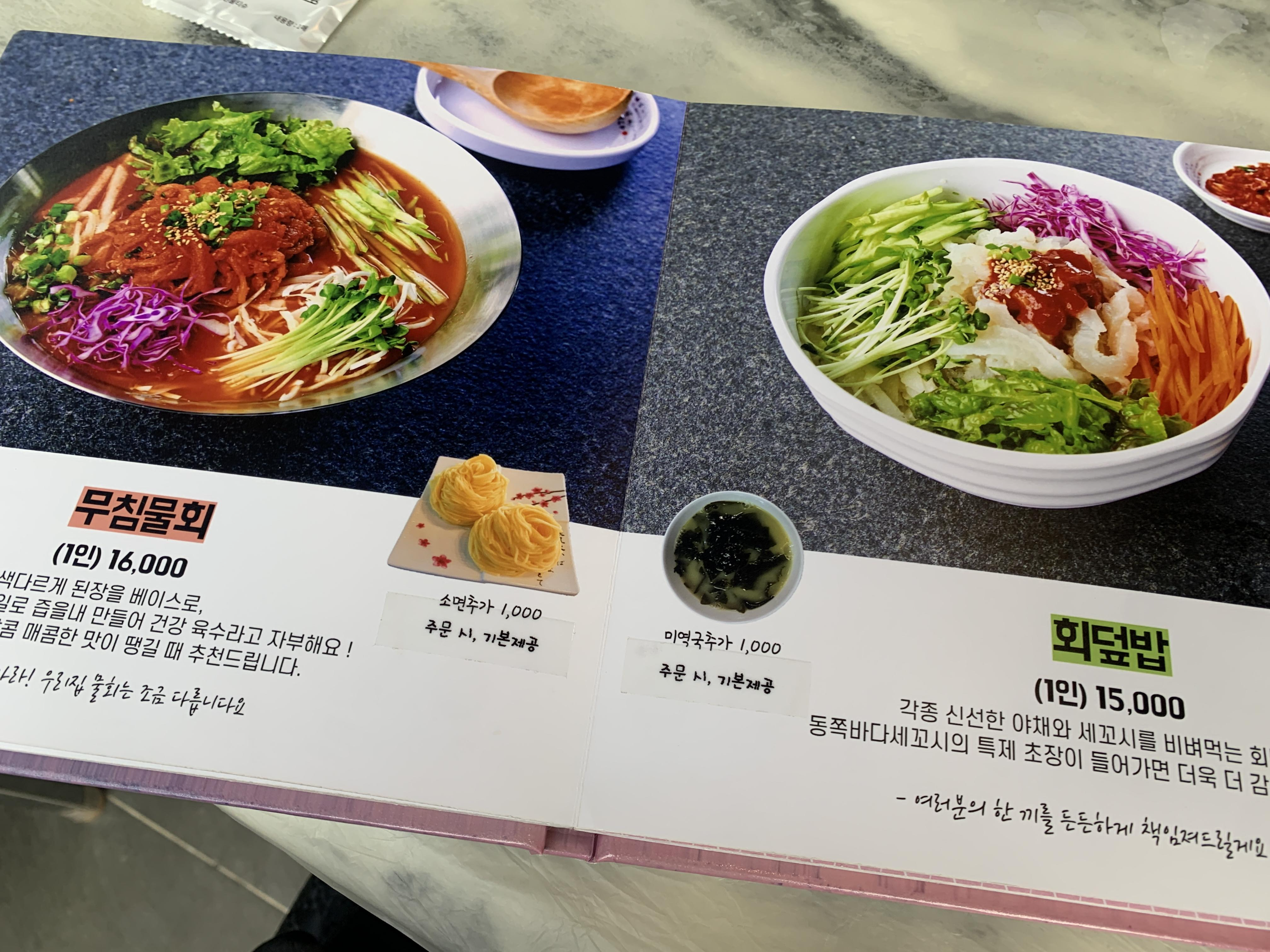 동쪽바다세꼬시 메뉴