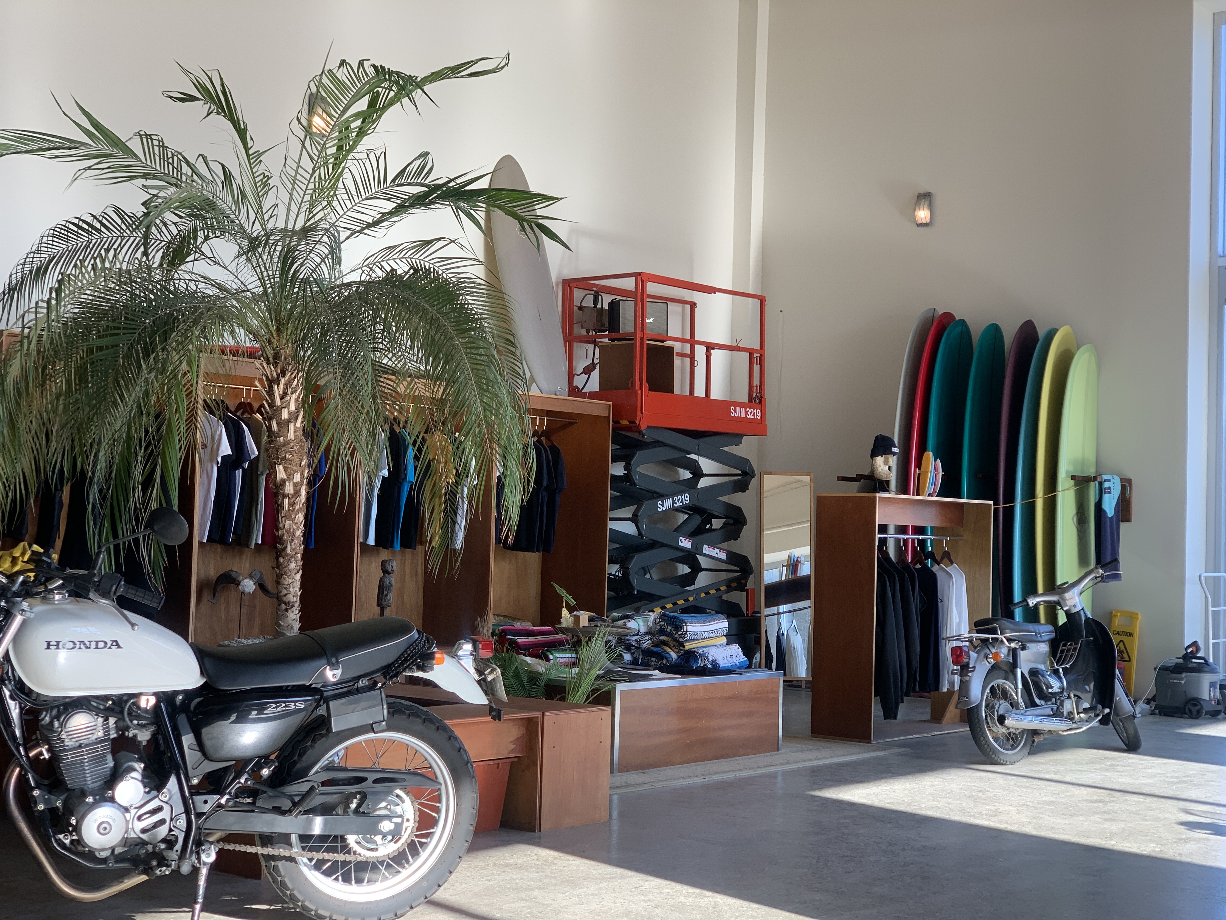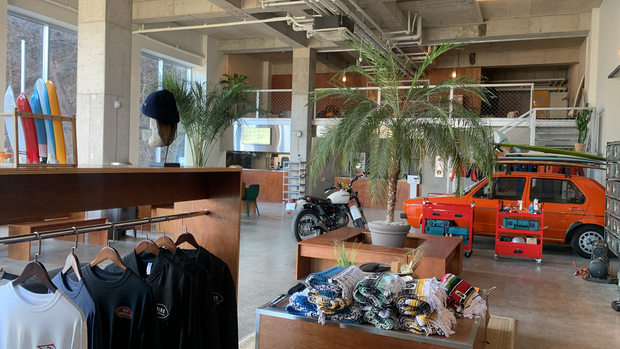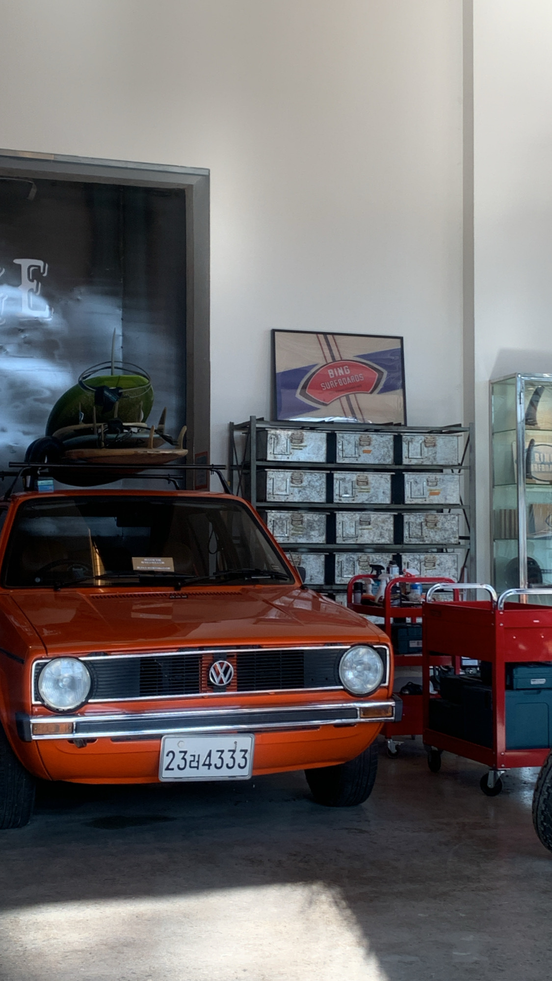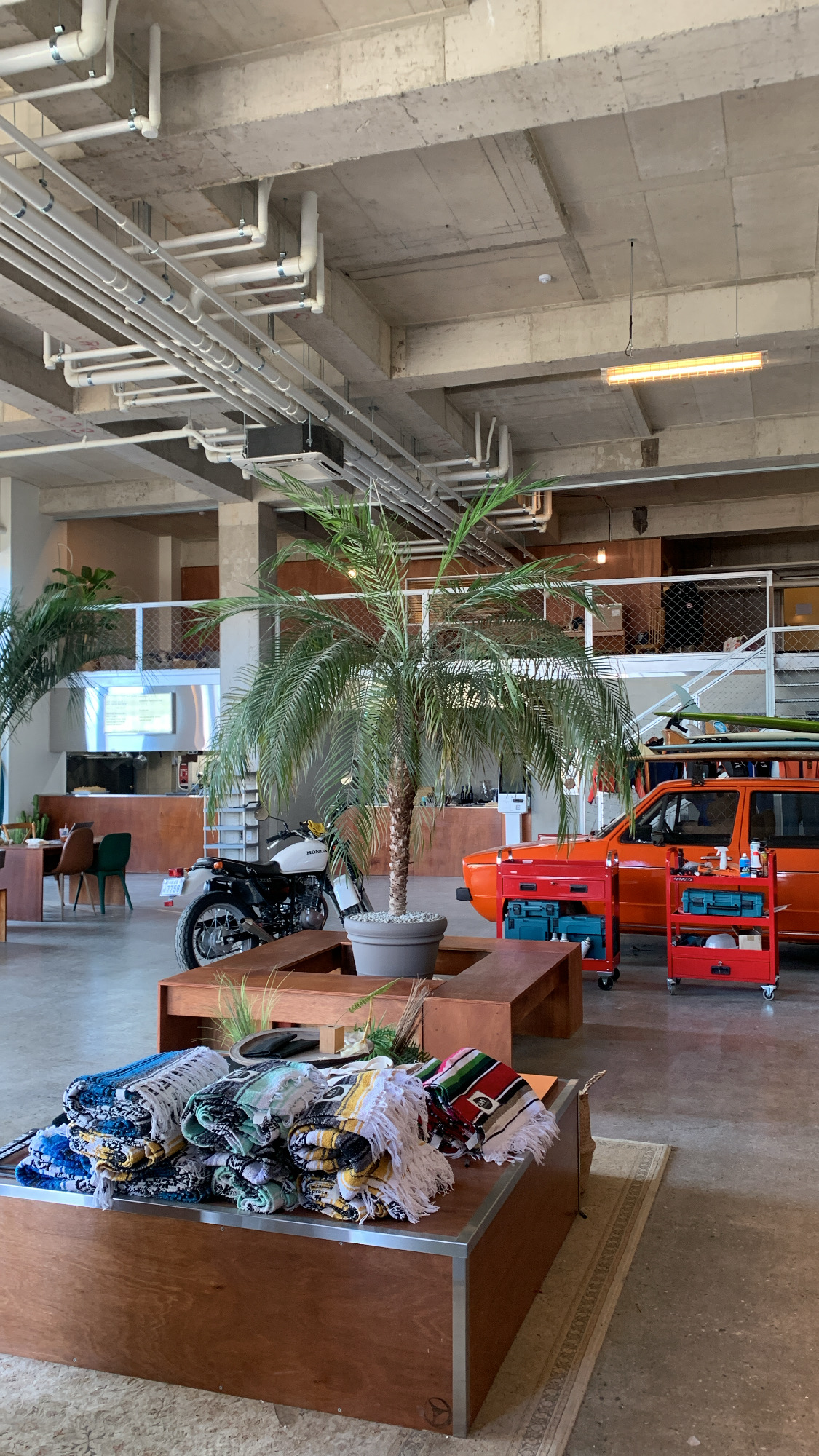 - 탁 트인 층고와, 식물 + 원색의 차와 오토바이로 분위기가 좋았어요.