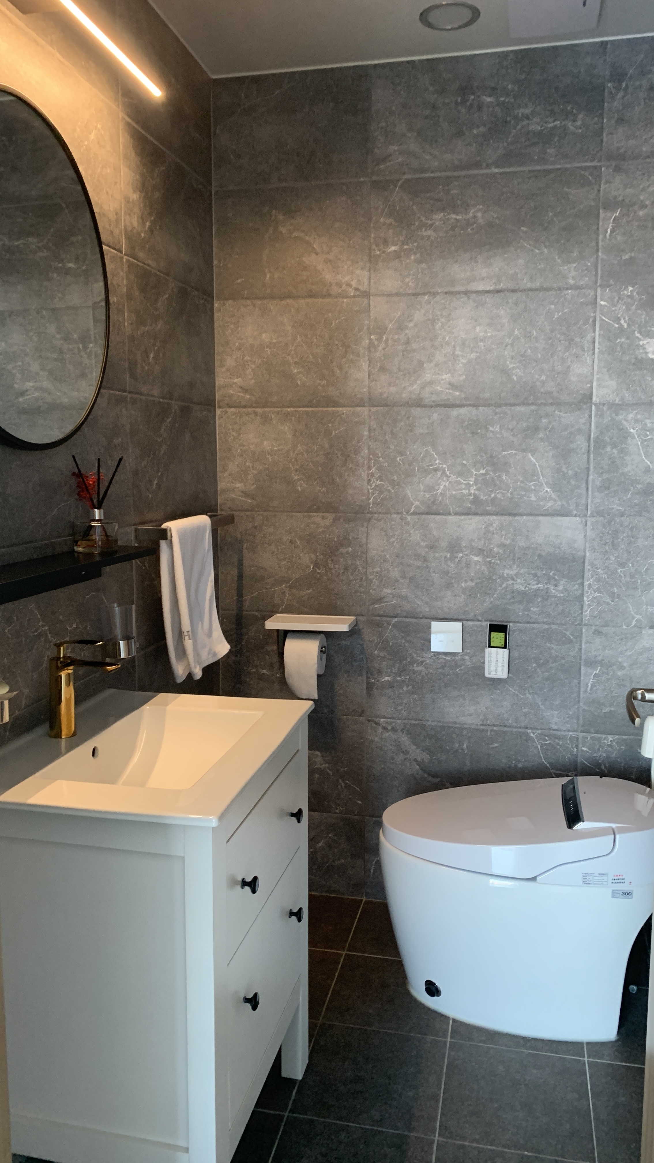 앞 사진 2개가 거실과 연결된 샤워 부스 욕실이고