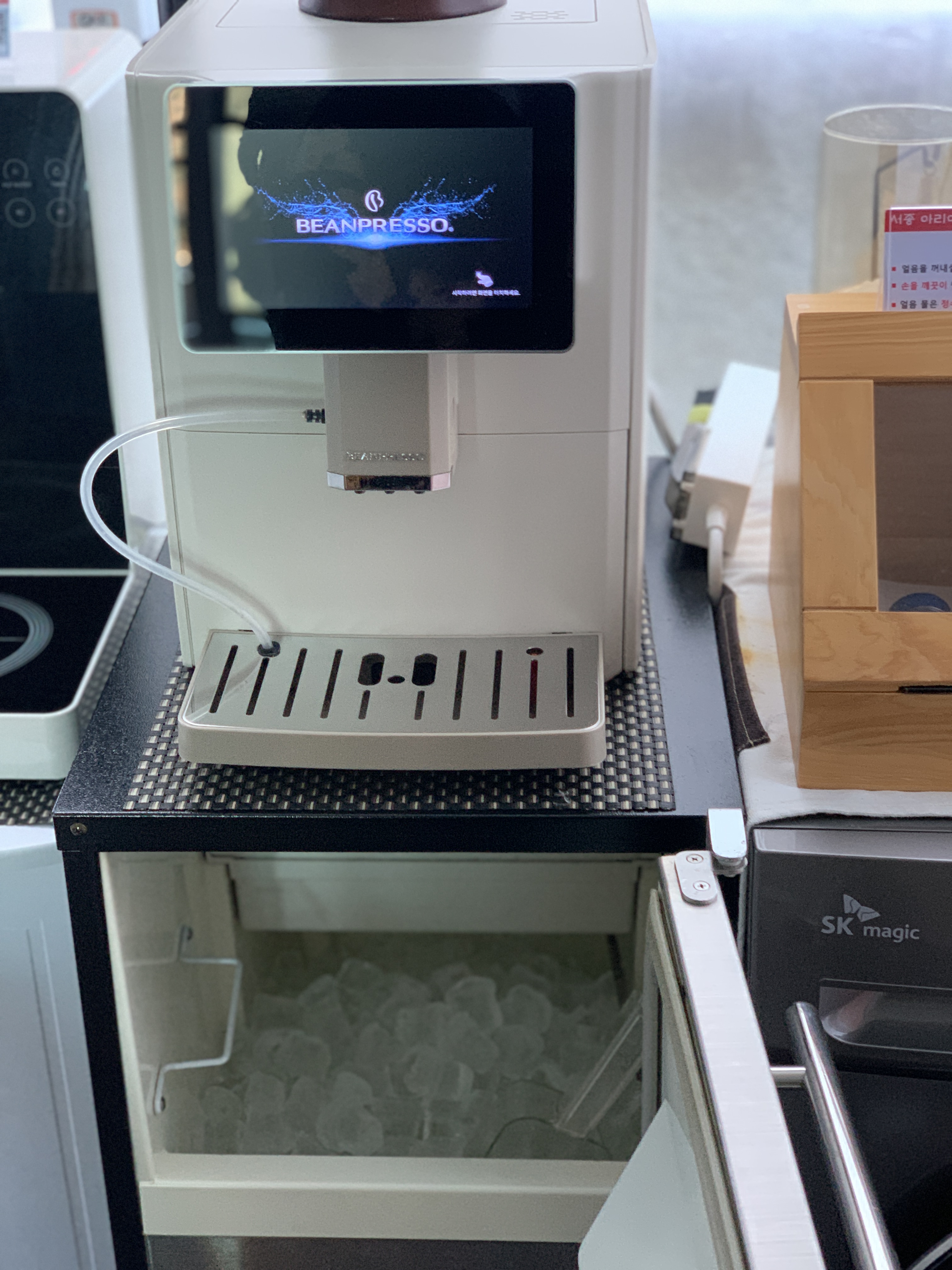 제빙기, 라면 조리기, 테이블, 의자
