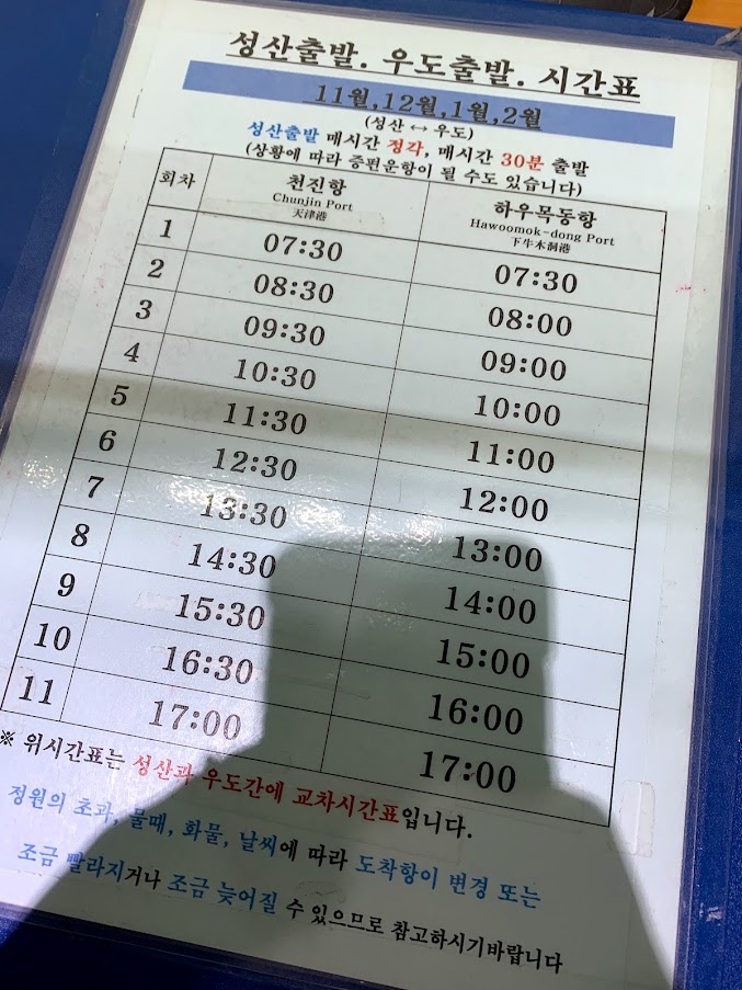 * 성산에서 출발하는 우도 배 시간입니다. 지금 보니 월별로 다른 것 같아요.