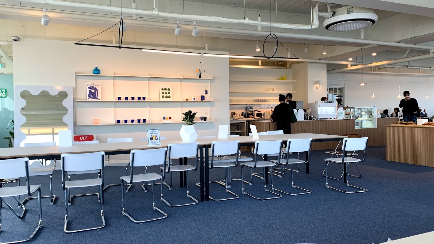 파란색 톤의 분위기에 통창이 3면으로 있어서 어떤 자리에 앉던