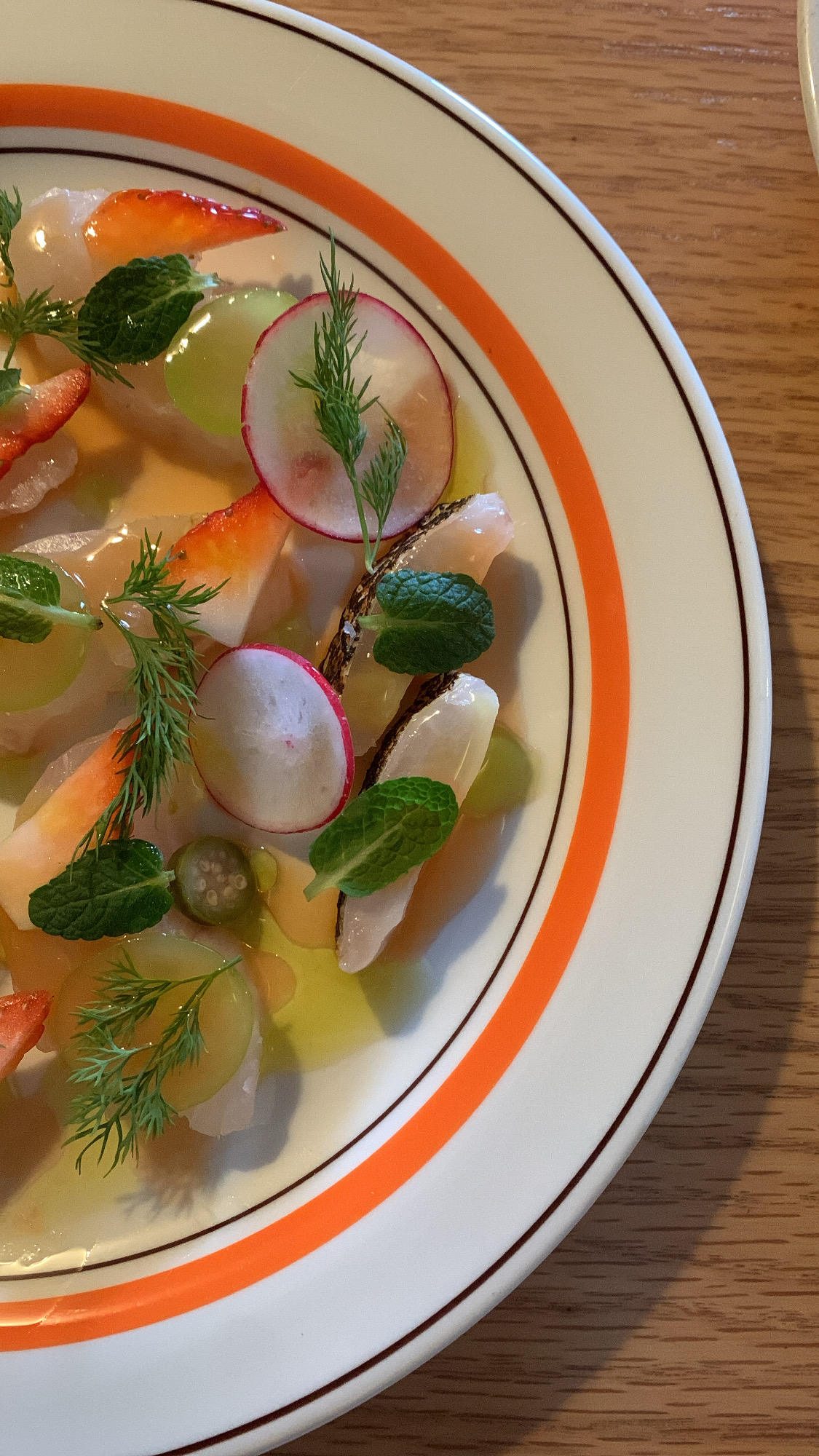 웰컴 타파스랑, 도미 카르파쵸, 옥수수 파스타,