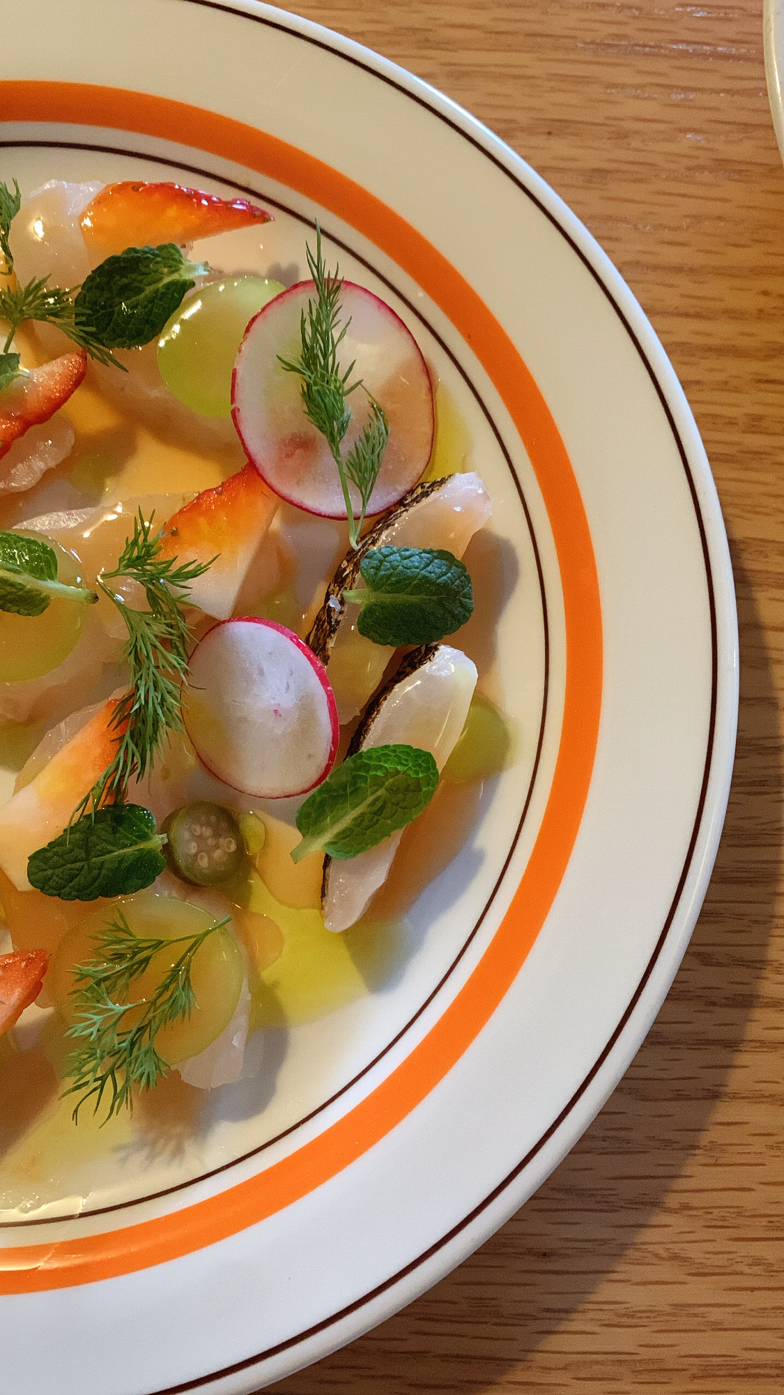 웰컴 타파스랑, 도미 카르파쵸, 옥수수 파스타,
