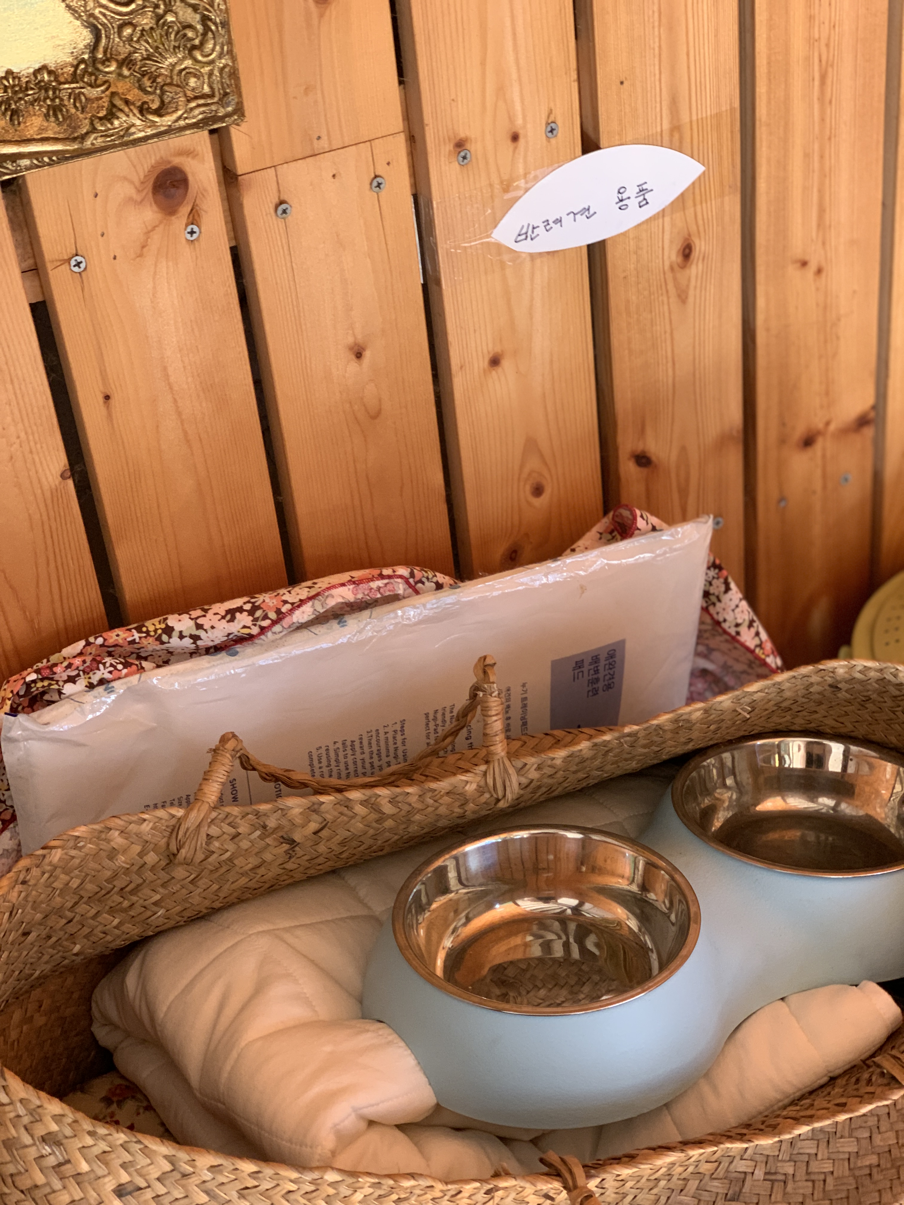 그리고 반려동물동반숙소(애견동반 숙소)인 만큼 용품이 따로 구비되어 있었습니다.
