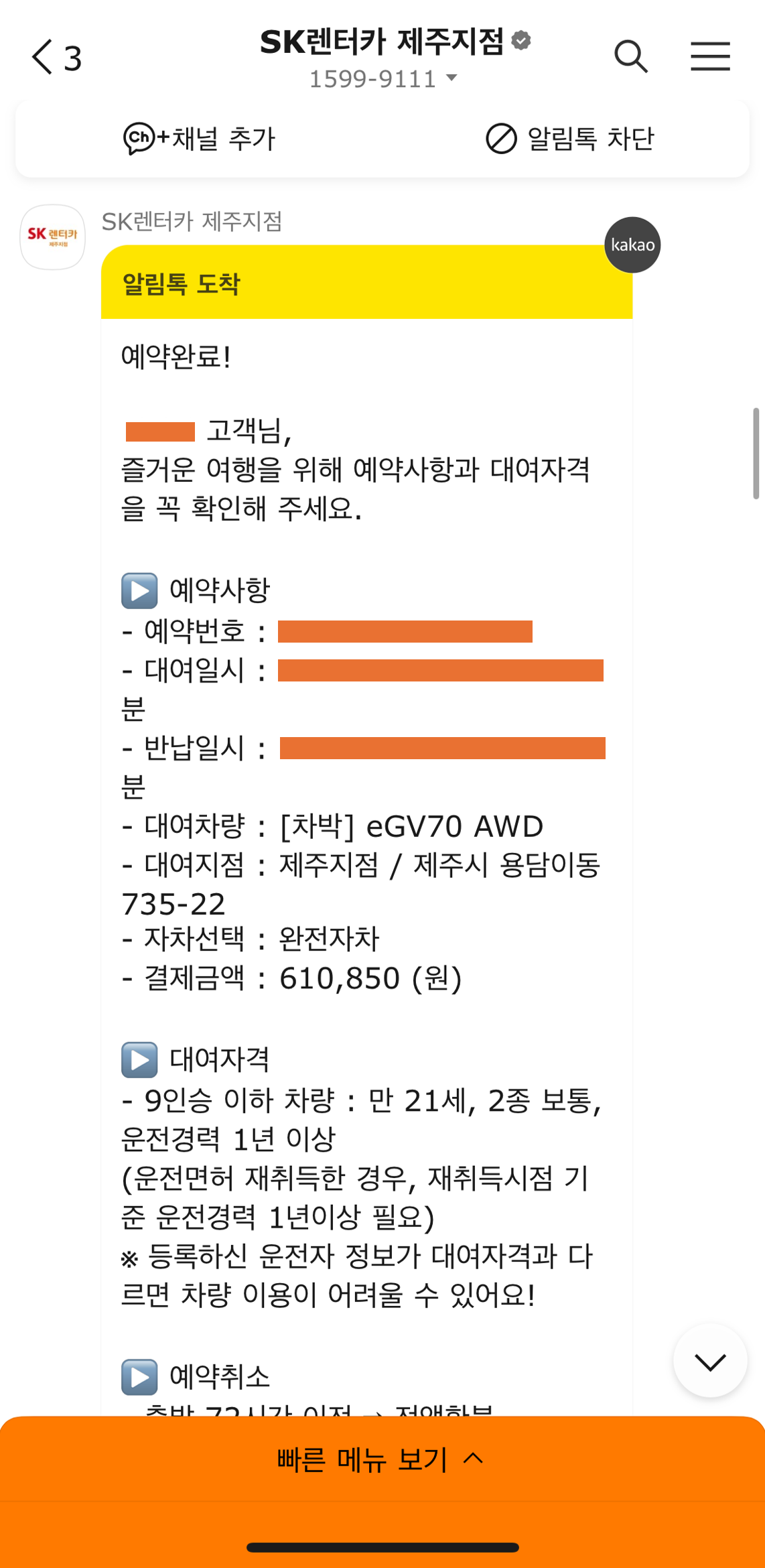 아 그리고 SK렌터카랑 롯데렌터카가