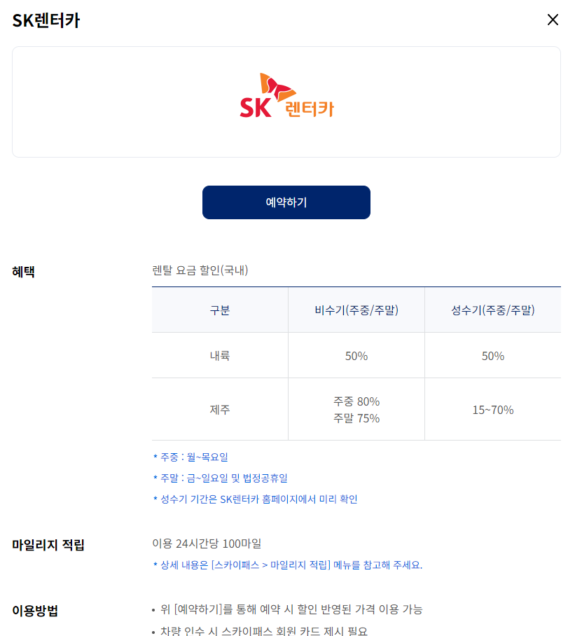 * T멤버십 SK렌터카 할인