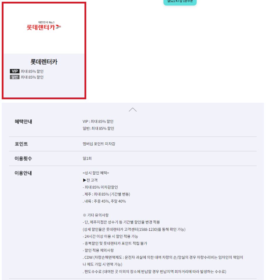 ※ 제휴사 검색창에 '롯데렌터카'를 검색하세요.
