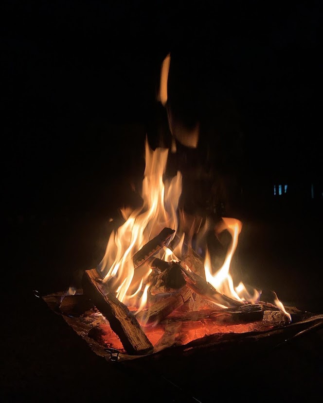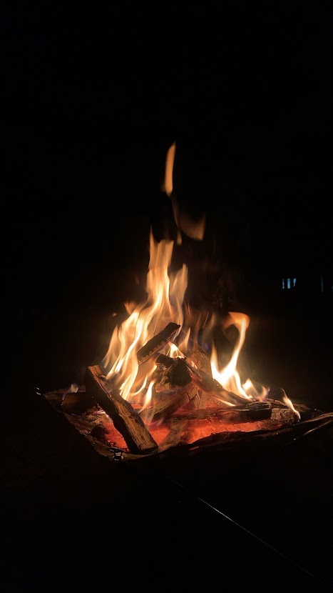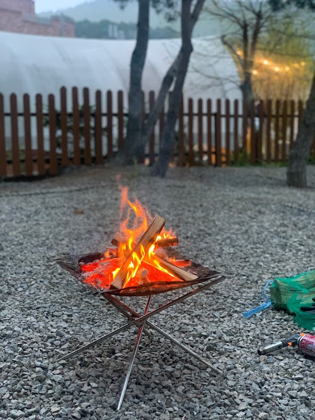 계속 떠들다가 조금 쌀쌀해져서 불을 피웠어요.