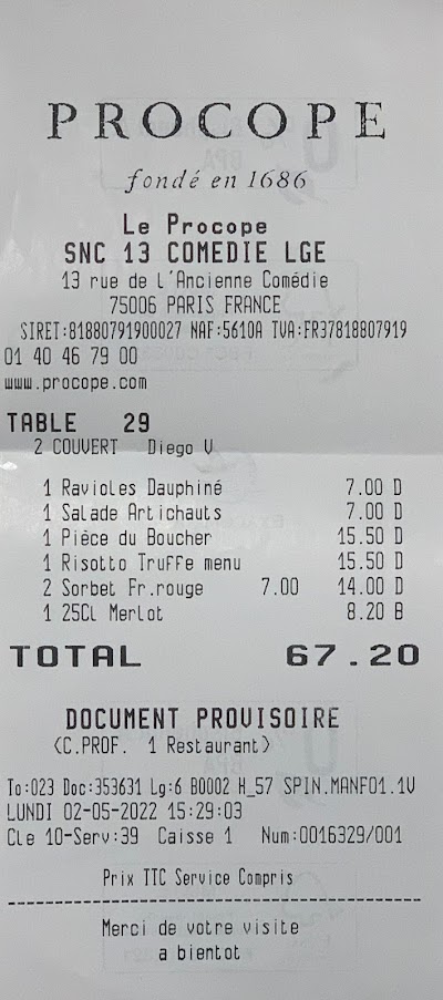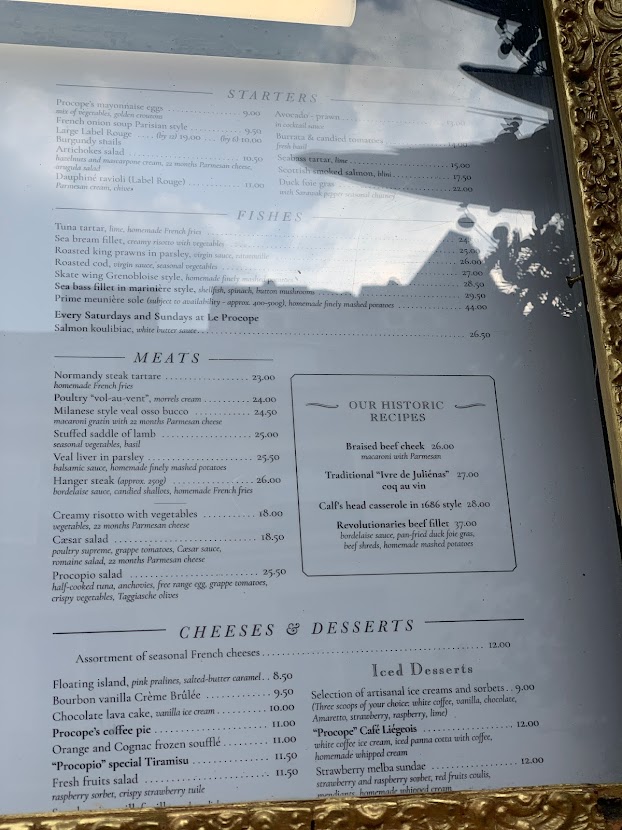 le procope 르 프로코프 메뉴