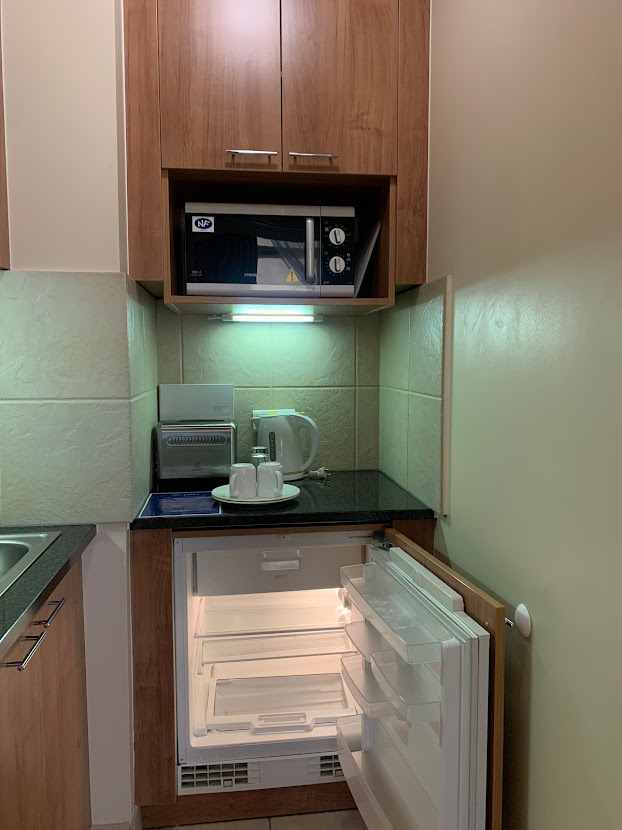 그 옆으로 화장실 그리고 문을 열면 방과 분리된 작은 주방이 있습니다.