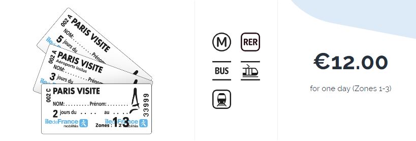 버스, 지하철, 기차, 트램,  RER로 1-3존 이용가능