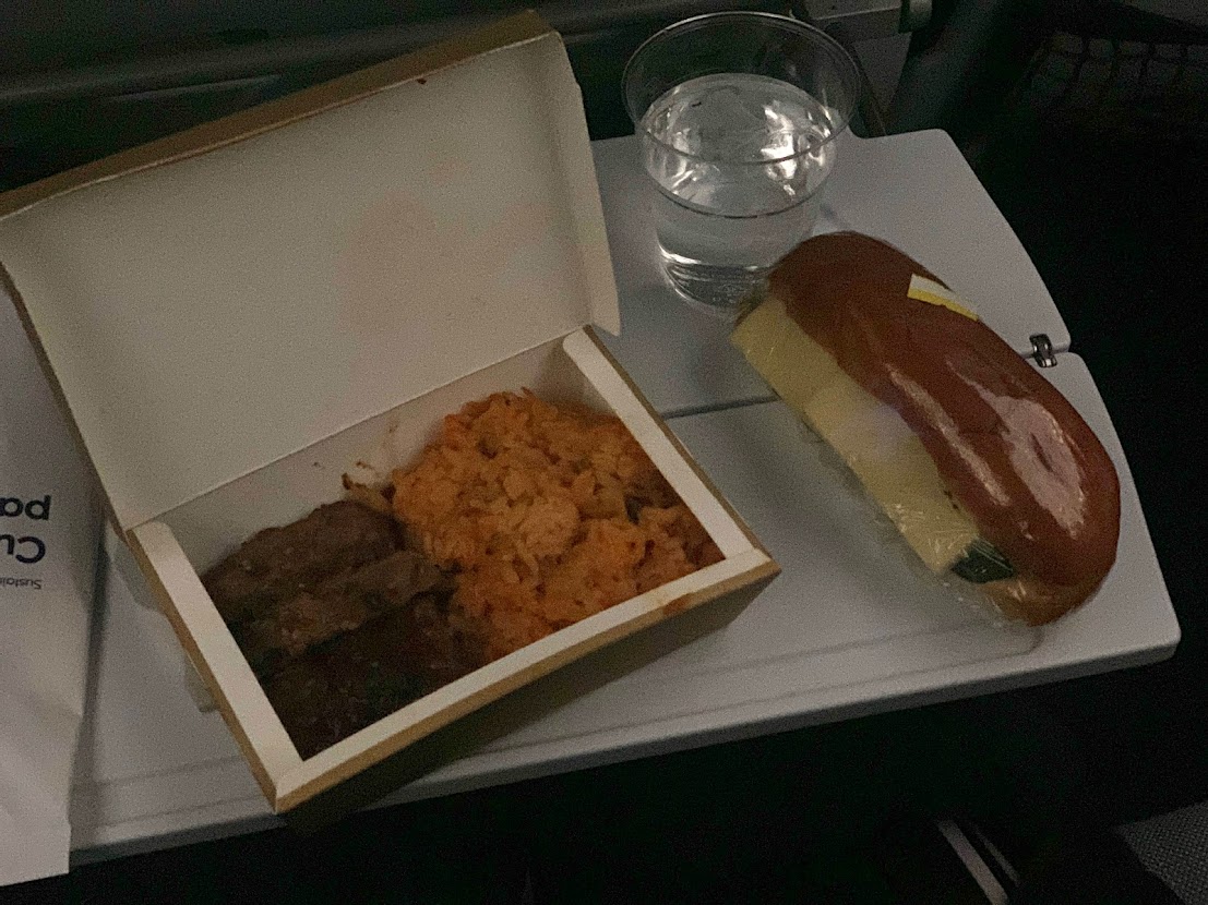 도착 전의 아침은 샌드위치와 김치볶음밥과 고기였습니다.