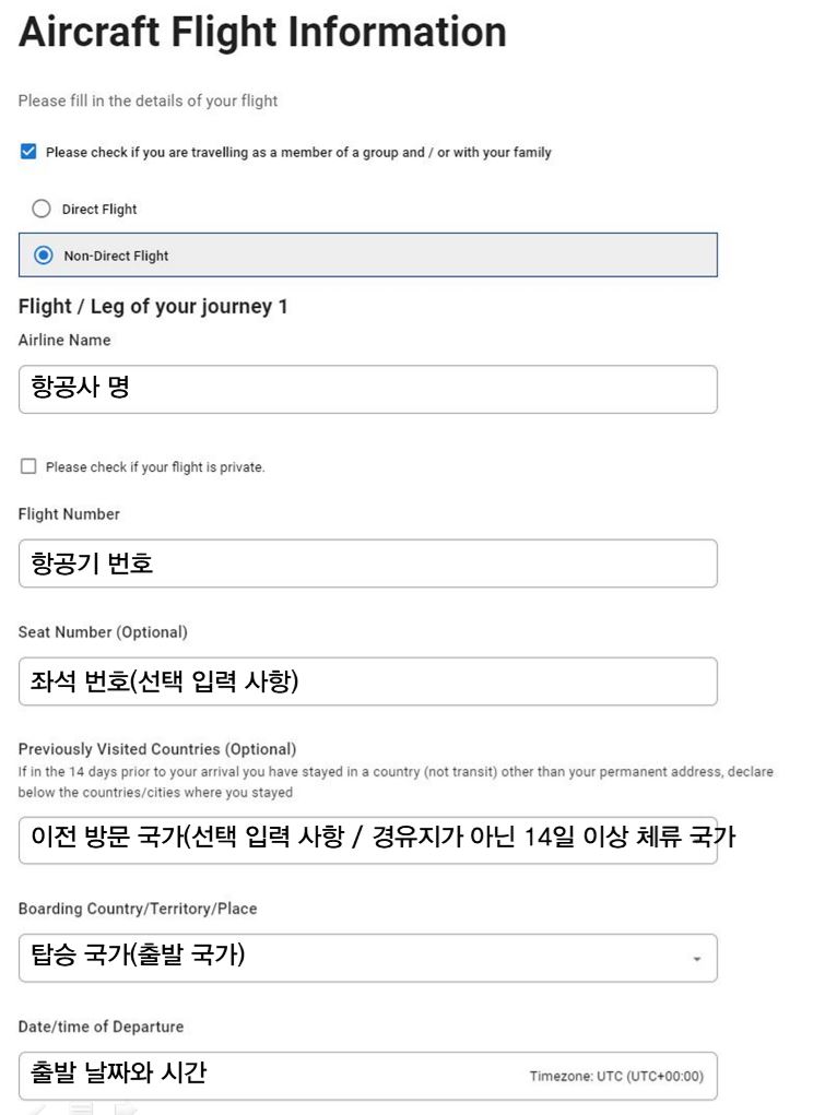 직항이라면 전 단계에서 완료하세요.