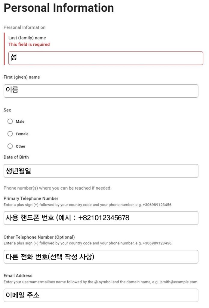 그래도 많이 다르지 않으니 차근차근 작성해서 잊지 말고 도착 전에 제출하시길!